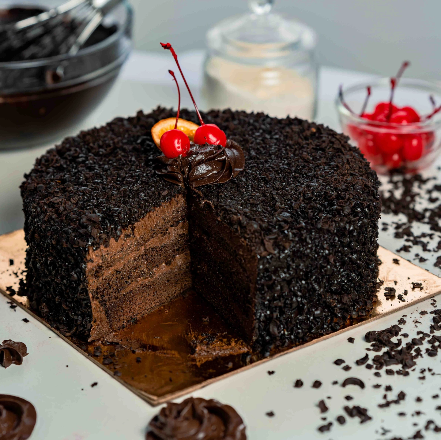 Chocolate Truffle Cake Indulge in pure decadence with our signature Chocolate Truffle Cake. Layers of moist, velvety chocolate sponge are generously filled and coated with a smooth, melt-in-your-mouth chocolate ganache. Every bite delivers a rich, luxurious chocolate experience—perfect for celebrations or simply satisfying your sweet cravings. Finished with a glossy truffle glaze and elegant chocolate accents, this cake is a chocoholic’s dream come true.
